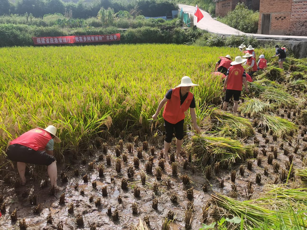 21日上午,省市县三级应急部门党员和青年干部代表前往宁化县淮土镇凤凰山村,开展“我在乡间有亩田”党员志愿服务,深入田间地头,进行收割水稻。志愿者一行头戴草帽,顶着炎炎烈日,来到田埂,脱掉鞋子,拿起镰刀,走进田间进行劳作。有的用镰刀收割稻穗,有的帮助搬运刚刚收割下来的稻穗,有的利用水稻脱粒机进行打谷脱粒,有的装袋搬运谷子,不一会儿工夫便收割了一大片水稻。