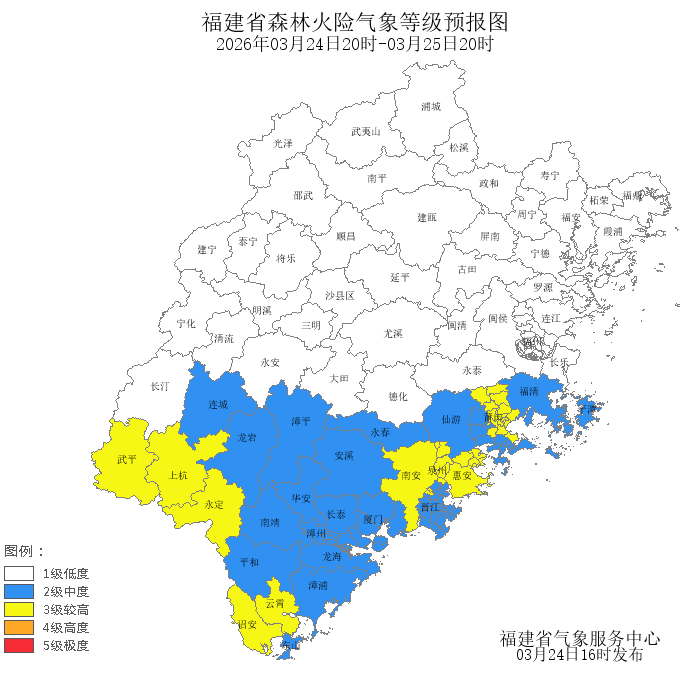 今天晚上到明天白天,泉州市、龙岩市、莆田市的森林火险气象等级为较高危险(三级),其中,云霄县、武平县、上杭县、南安市、永定区、惠安县、荔城区、泉港区、洛江区、涵江区、诏安县、鲤城区的森林火险气象等级为较高危险(三级)。