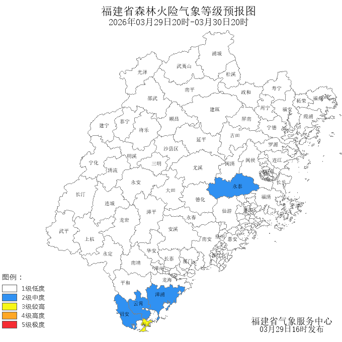 今天晚上到明天白天,东山县的森林火险气象等级为较高危险(三级)。