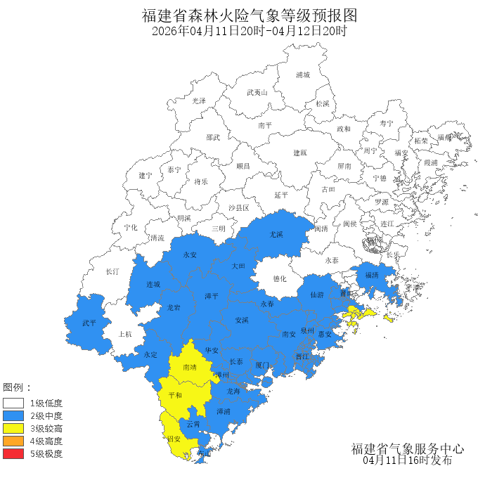 今天晚上到明天白天,漳州市的森林火险气象等级为较高危险(三级),其中,秀屿区、平和县、南靖县、诏安县的森林火险气象等级为较高危险(三级)。