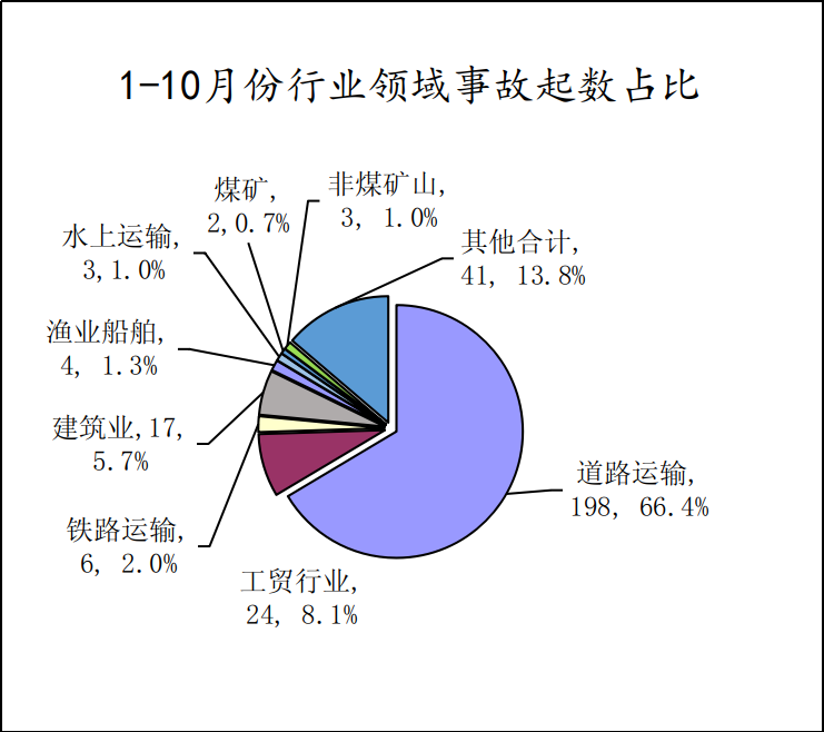 (一)事故总体情况。1-10月份全省共发生各类生产安全事故298起、死亡253人,同比减少104起、70人,分别下降25.9%、21.7%;发生较大事故5起、死亡27人,同比减少5起、13人;没有发生重大以上事故,同比持平。